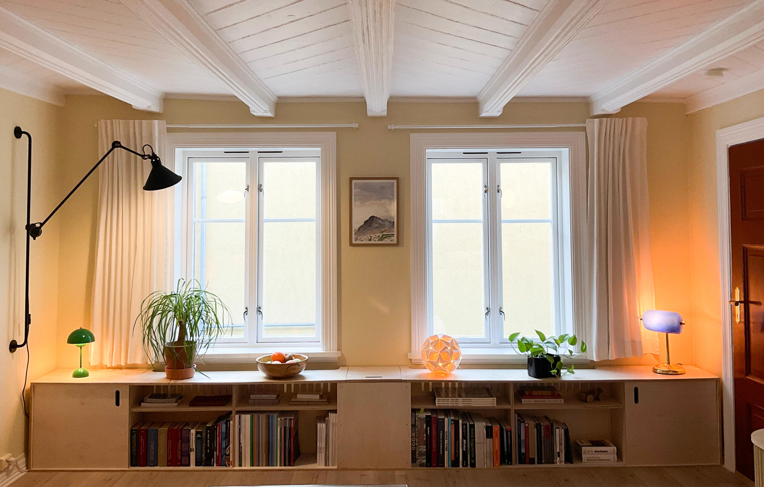 Ombygging av leilighet i eldre trehus i Trondheim sentrum. Ombyggingen åpner opp planløsningen for å maksimere dagslys og romfølelse.Boligen har lav takhøyde og er på rundt 65 kvadratmeter. Det er tegnet ut og bygget flere plassnekrede løsninger som løser et sårt behov for lagring og maksimerer plassutnyttelsen.